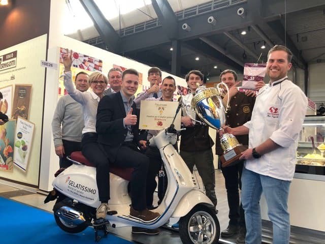 Marco und sein Team überzeugen die Jury mit ihrem Pistazieneis und werden Sieger der Fachmesse "Gelatissimo" in Stuttgart